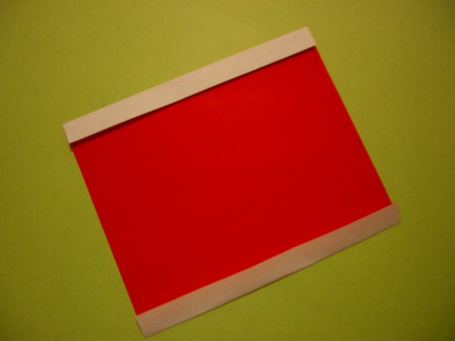 1. Num pedaço quadrado de uma folha vermelha de um lado e branca de outro, dobra (cerca de 1cm) em dois lados, para formar a forma do L.