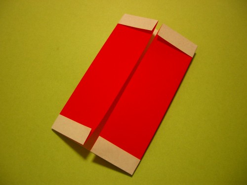 3. Do outro lado, faz duas dobras, uma de cada lado, até ao centro (que acabaste de fazer acima).